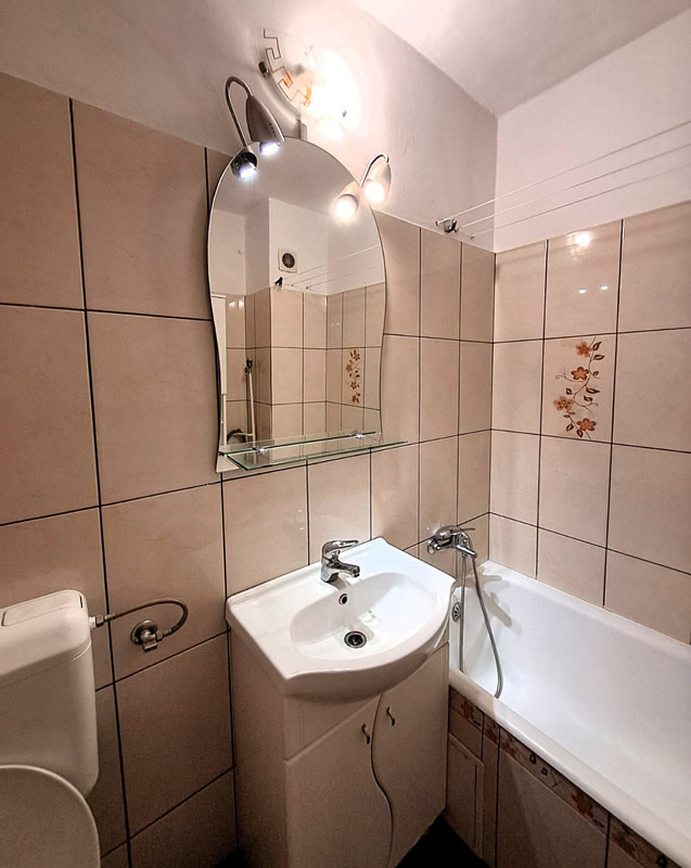 - Baie spațioasă dotată cu cadă și loc generos pentru mașina de spălat.