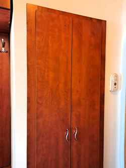 - Ușă de intrare realizată la comandă, din lemn masiv de stejar, cu proprietăți excelente de izolare fonică și termică.